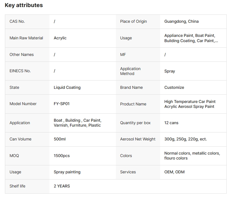 Maligayang pagdating sa aming pabrika, kami ang nangungunang tagapagtustos ng mataas na temperatura na lumalaban sa kulay ng spray na pintura. Ang aming espesyal na pormula ay maaaring makatiis ng matinding temperatura habang nagbibigay ng masigla at pangmatagalang mga kulay.